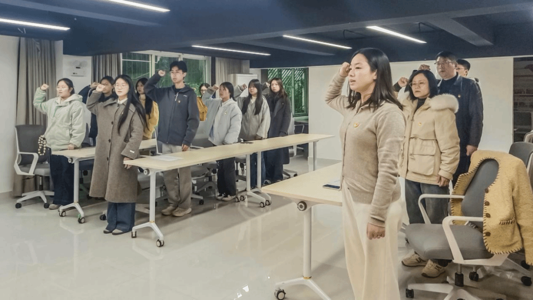 一声誓言,一份承诺,一生坚守。新党员代表王亚楠在发言中表示,作为预备党员,我们将把学习党的创新理论作为终身课题,始终在思想上政治上行动上同党中央保持高度一致;我们将立足学院育人阵地与外语专业学习,主动担当作为,把党员的先进性体现在一言一行中;我们将严格遵守党的章程和纪律规矩,自觉接受党组织和群众的监督;我们将以优秀党员为榜样,发扬党的优良作风,始终保持昂扬向上的奋斗姿态,用青春和汗水书写无愧于党、无愧于人民、无愧于时代的壮丽篇章。